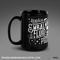 Our popular Embalming design, now on a delightful black mug, that's sturdy, sleek, and perfect for your morning java or afternoon tea.