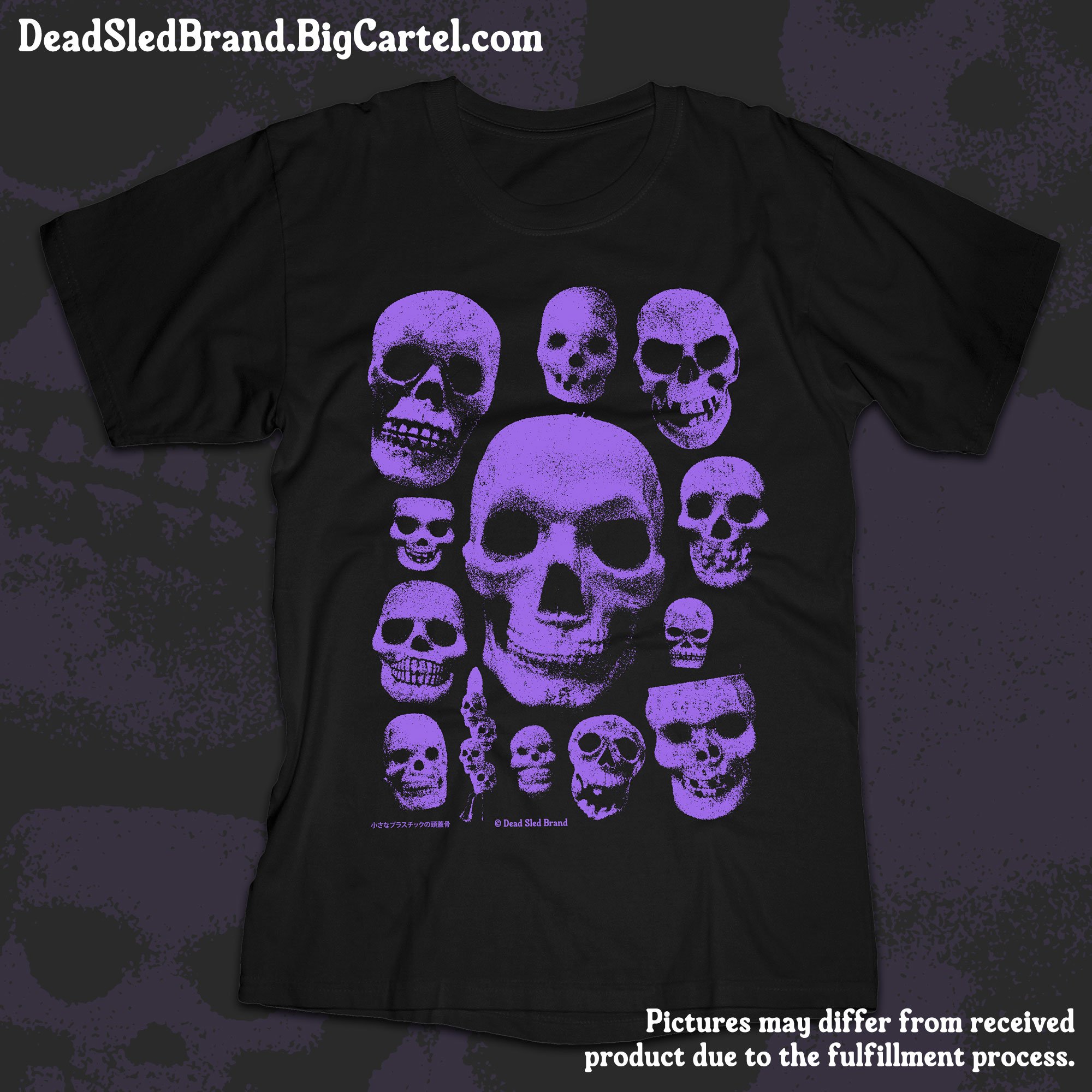Brand-new for the Halloween season! A collection of the various, vintage, Halloween blow-mold skulls from around DSB HQ, painstakingly photographed, manipulated and assembled into a crazy collection of spooky stares for you to wear. A piece that's been on the to-do list for quite some time, now, just in time for Spooky Season.